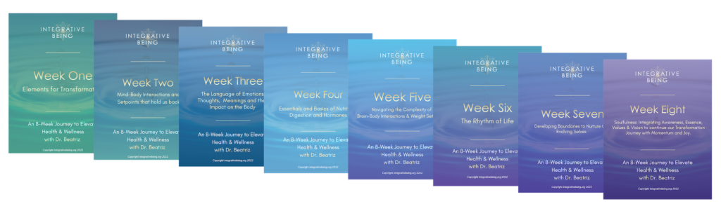 Hello! I am Dr. Beatriz Olson and I’d like to invite you to join me to take a remarkable 8-week self guided journey that will help you transform your health to a whole new level. With over 40 years of experience in the field of internal medicine, endocrinology and integrative medicine, I will help you integrate your mind, body and spirit to create your own blueprint for optimized health and well being.